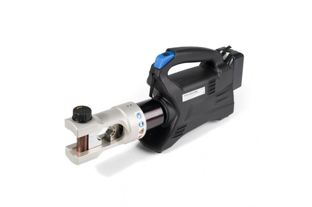 Аккумуляторный гидравлический пресс КВТ ПГРА-630А предназначен для силового обжима всех стандартных наконечников, коннекторов и зажимов.