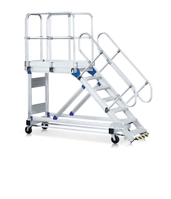 Алюминиевый трап с платформой Zarges Z600 передвижной 800мм 17 ступеней 45° 40259663 с эргономичным стопором Ergo Stop. Мобильность и комфорт: лестница с эргономичной функцией тормоза, а также платформа особо большого размера. Лестница-платформа, исключительно быстро приводимая в рабочую готовность благодаря новой системе тормозов ZARGES - теперь в числе стандартных изделий. ZARGES Ergo Stop - все четыре ролика тормозятся очень удобно с помощью педали у нижней ступеньки. Особо просторная платформа размерами 1 200 x 800 мм позволяет удобно работать даже двум человекам. Стойки из высокопрочных алюминиевых прессованных профилей с резьбовыми каналами для гибкого монтажа. Выбор необходимого наклона: 45° для удобного подъема или 60° для узких мест. Серийное покрытие ступеней - желобчатый алюминий. В качестве опции за дополнительную плату доступно также покрытие из стальной решетки. Это следует указать при заказе. Перильное ограждение: серийное оснащение с двусторонним поручнем и перилами площадки по периметру. Примечание: Соответствует DIN EN ISO 14 122.