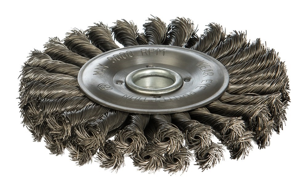 Двухрядная дисковая щетка со жгутовой стальной проволокой Мастер №434 ПрофОснастка 20604004 предназначена для особо жестких очистных работ, идеальны для сварных швов, окалины и ржавчины. Используется для профессионального, промышленного и индустриального применения. Щетка высокого качества изготовления для применения с использованием УШМ (без резьбы). Тип проволоки по материалу изготовления – жгутовой, а форма щетины – гофрированной. Диаметр проволоки 0,5 мм.