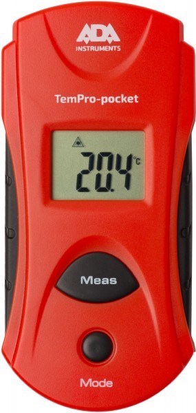 Пирометр ADA TemPro-pocket А00401 — это миниатюрный бесконтактный измеритель температуры. Размер сравним с размером мобильного телефона. Занимает не много места, легко поместится в карман. Прибор производит измерения с помощью ИК технологии. Он предназначен для измерения температуры поверхности, которая непригодна для традиционного измерения (например, подвижные объекты, токсичные объекты, находящиеся вне зоны доступа или под напряжением). Результаты измерений выводятся на ЖК дисплей с функцией фиксации значений. Лазерный указатель позволяет точно навести прибор. Быстрые измерения, легкий в обращении и компактный при транспортировки. Он широко используется для нахождения плохого контакта (перегрева) в электрическом соединении, горячие и с индукционном нагревом высокочастотные объекты, контроле приготовления еды и ее хранения, контроле температуры нагревательных и морозильных систем, контроле температуры во время укладки асфальта и т. д. Изменяемый коэффициент теплового излучения для различных материалов позволяет получать точные результаты.