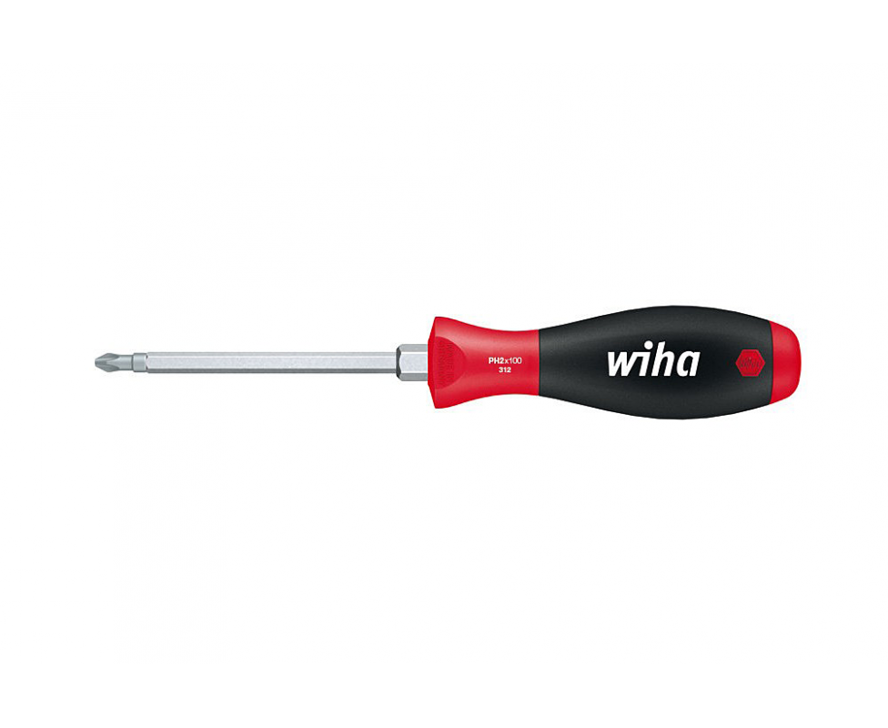 Крестовая отвертка Wiha SoftFinish 312SF PH 2x100 00765 - отвертка с профилем Phillips из высококачественной легированной стали с шестигранным жалом и шестигранником под гаечный ключ, поможет там, где требуется усилие в работе с крепежами.