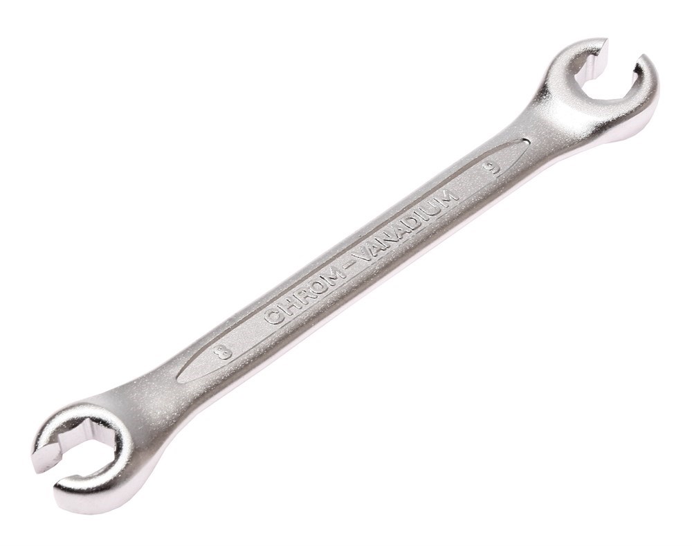 Накидной ключ 8х9мм с прорезью JTC-5103, конструкция ключа предназначена для конусных гаек различных систем автомобиля. Инструмент изготовлен из хром-ванадиевой стали, полностью закален, соответствует стандартам Американского национального института стандартов (ANSI).