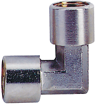 Переходник Fubag L - 1/4"FF соединяет участки пневмосистемы под углом 90°. Крепление - резьба 1/4".