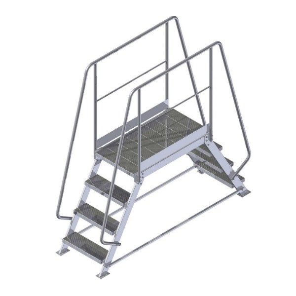Переходный мостик ALUR МП-0,54х1,0х1,75 обеспечивает безопасный переход над конвейерными лентами, используется для обслуживания разнообразного оснащения на складах, в магазинах, на производстве.