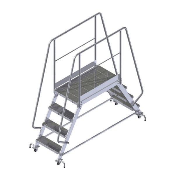 Переходный мостик на колесах с упорами ALUR МП-0,54х2,0х1,75КУ обеспечивает безопасный переход над конвейерными лентами, используется для обслуживания разнообразного оснащения на складах, в магазинах, на производстве.