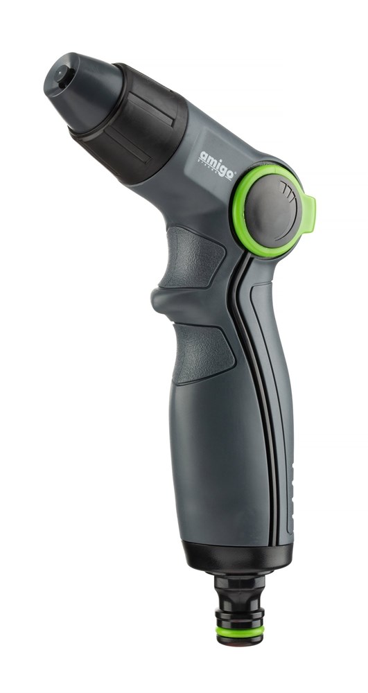 Пистолет-распылитель Amigo 79390 2 режима предназначен для ухода за садовыми растениями и оснащён двумя режимами распыления. Устройство обеспечивает удобство и точность полива благодаря регулировке распыления от струи до конуса и регулировке напора воды. Комфортная анатомическая рукоятка с soft-покрытием обеспечивает надёжный и удобный захват.
