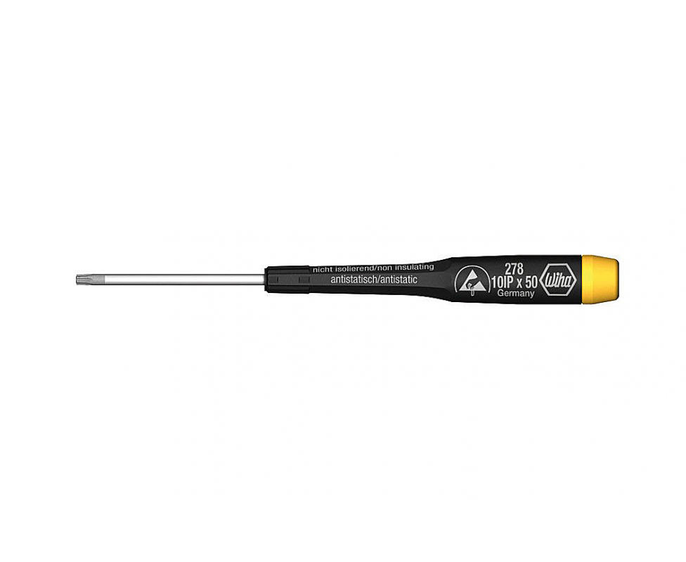 Прецизионная отвертка-звездочка Wiha Precision ESD TORX PLUS 278IP 8IPx40 27764 - антистатическая отвертка для винтов TORX PLUS из высококачественной легированной стали с диссипативной рукояткой и крутящимся колпачком. Предназначена для точных работ с деталями, где требуется отвод электростатического разряда.