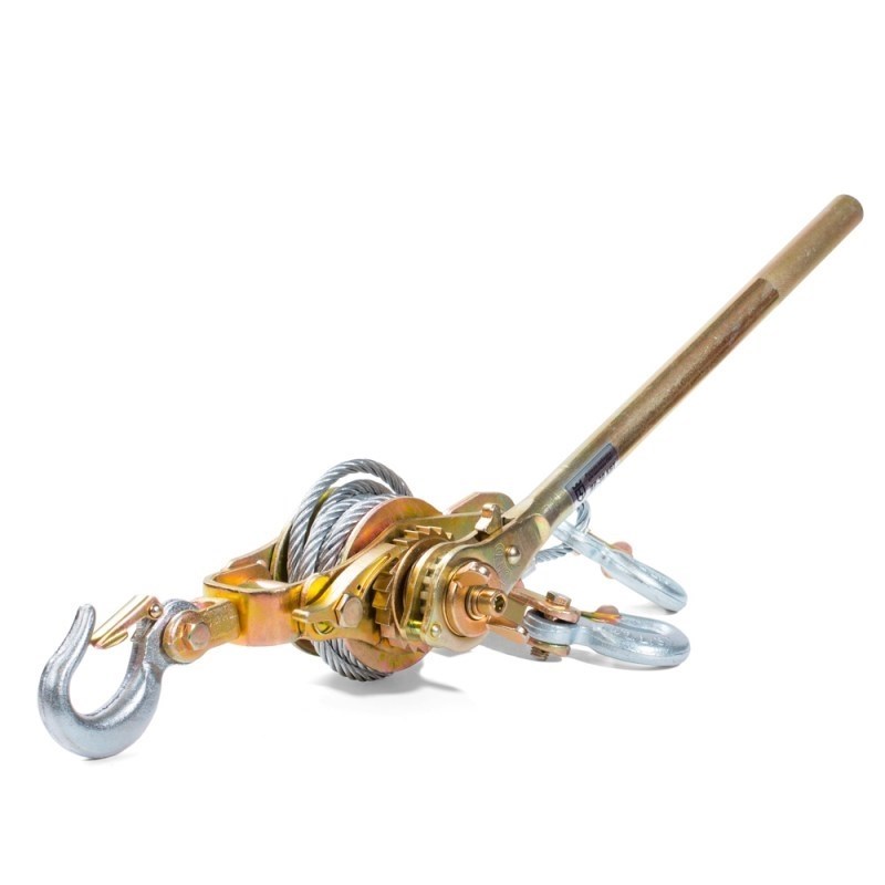 Ручная лебедка КВТ ЛР-30 предназначена для натяжения самонесущего изолированного провода (СИП) и оптоволоконных кабелей. Обеспечивает перестановку провода СИП с монтажного ролика на поддерживающие и анкерные зажимы. Усиленный фрикционно-храповой механизм с переключателем, обеспечивающим пошаговое натяжение и отдачу. 3 крюка. Два режима работы: с блоком и без блока. Повышенная гибкость троса. Тяговое усилие без блока 1,5 т, длина стального троса без блока 3,2 м.