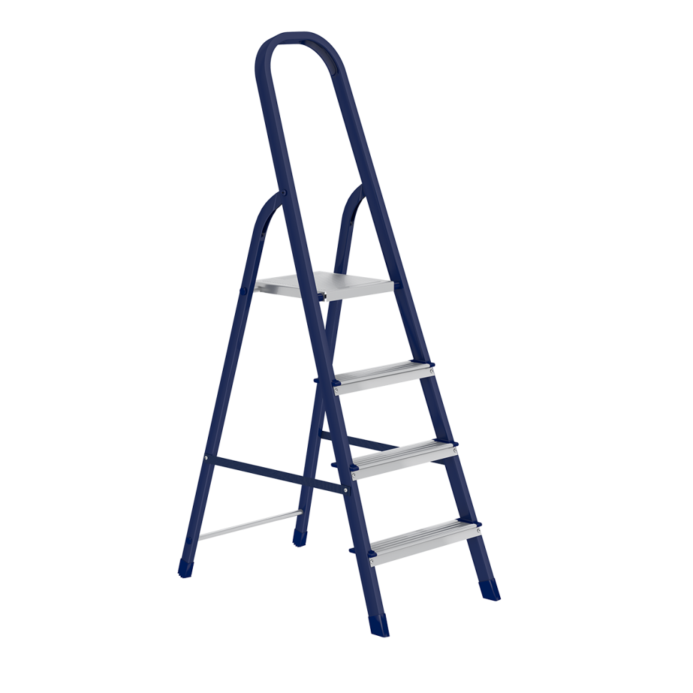 Стальная односторонняя 4-х ступенчатая стремянка применяется для бытовых, ремонтных, строительно-монтажных, отделочных и садово-дачных работ. Особенности: антикоррозийное полимерное покрытие, широкая стальная платформа и ступени с рифленой антискользящей поверхностью, пластиковые насадки на ножках обеспечивают стабильность и безопасность. Размер в рабочем положении: 43*76*141см, высота до верхней платформы 80см. Максимально достижимая высота 255см. Максимальная нагрузка 150 кг. Вес- 5,87кг.