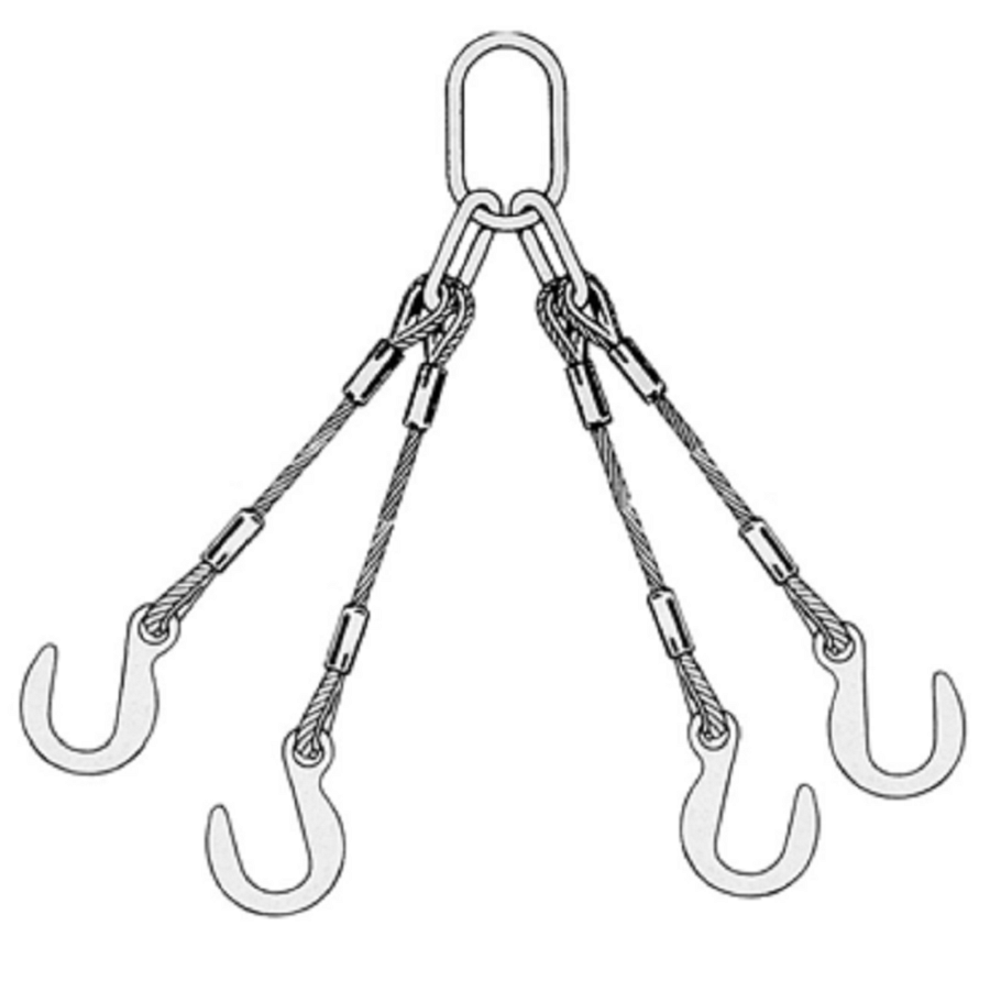Строп канатный TOR 4СК г/п 12,5 т 1,5 м крюки с широким зевом чаще всего применяется при работе с габаритными грузами для крепления в четырёх точках опоры. На профессиональном сленге эта позиция называется "канатный паук". Температурный режим работы без потери свойств составляет от -40° до +100°С.