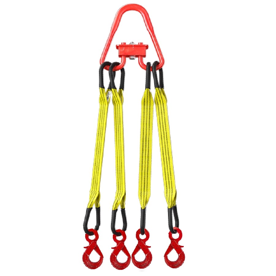 Строп текстильный TOR 4СТ 6,3 т 6,0 м 90 мм с самозапирающимися крюками - приспособление для подъема, перемещения и удержания различных грузов. Конструктивно он состоит из стального звена, к которому прикреплено 4 ветви из прочного полиэстера. На конце каждой находится крюк или иной захват, который непосредственно удерживает груз.