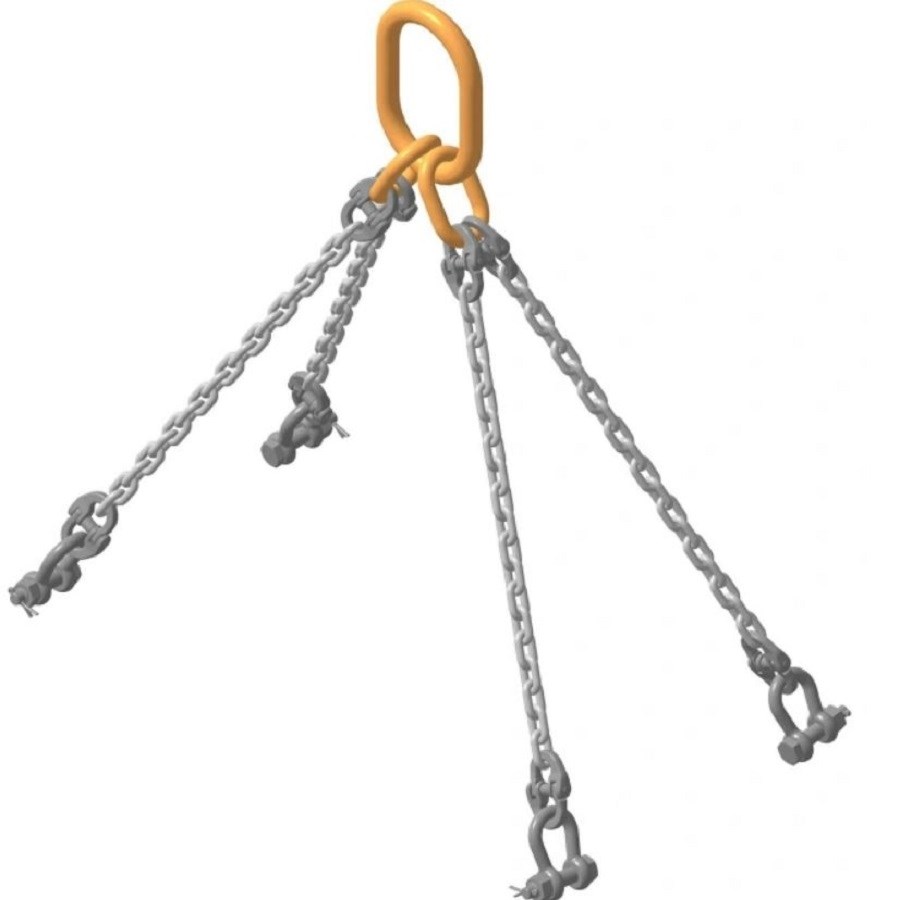Строп цепной TOR 4СЦ г/п 4,25 т 3,0 м звено NRLI 6,7т (скобы) состоит из 4-х цепных ветвей со скобами, связанных овальным звеном. Строп 4СЦ производится в соответствии с ТУ 3178-005-41037529-2016 (ТР ТС 010-2011). Используется обычно для удержания грузов при строительных и монтажных, такелажных работах. Также часто применяется совместно с талями и тельферами.