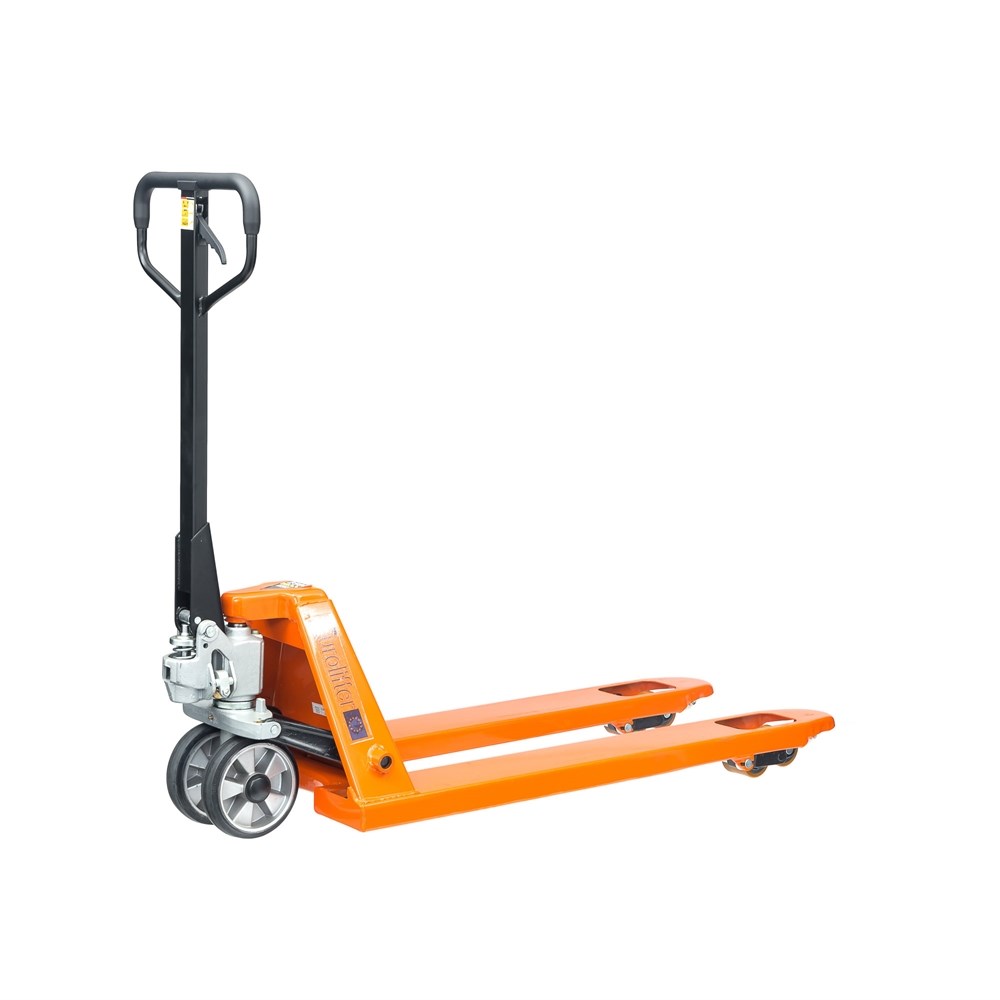 Гидравлическая тележка Eurolifter EL-20-2.0 (540х2000),применяется для перевозки грузов массой до 2т, уложенных на поддоны. Ручка А, высота 1200мм. Материал колес не оставляет следов на поверхности и снижает уровень шума при перевозке. Резина- 200мм, ролики полиуретан, цвет-транспортный оранжевый 2009. На концах вил расположены по два опорных ролика, которые равномерно распределяют нагрузку. Тележка имеет простой принцип работы и не требует от оператора специальных навыков. Грузоподъемность 2т., высота подъема (max) 200мм., высота подъема (min) 80мм. Длина вил 2000мм, общая длина 2400мм., ширина вил 540мм. Размеры рулевых колес диаметром 200x50мм. Размеры роликов диаметром 80x70мм. Все вращающиеся узлы снабжены пресс-масленками. Хромированные опорные и соединительные втулки обеспечивают высокие ходовые качества и длительный межсервисный период. Уникальная конструкция клапана-распределителя, гарантирующая сверх четкую работу гидравлической системы. Эргономичная обрезиненная ручка для работы при низких температурах Наличие накатного ролика на концах вил, служащее для преодоления незначительных препятствий и облегчающее работу на неровных полах.