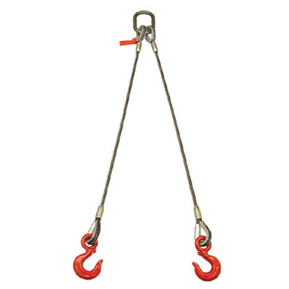 Канатный строп TOR 2СК г/п 0,63 т 9,5 м 1007263 чаще всего применяется при работе с длинными грузами для крепления в двух точках опоры. Обжим петель может происходить как с помощью зажима, так и методом заплетки. В петлю может быть установлен коуш для защиты от излома и стирания.