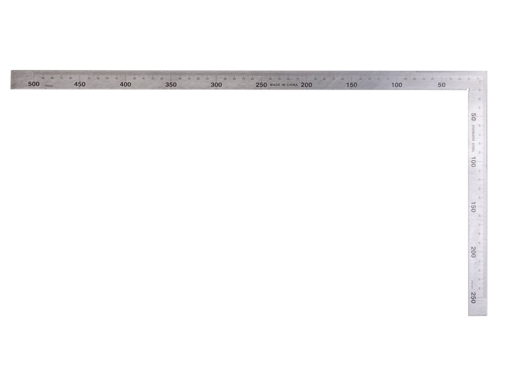 Двусторонняя метрическая шкала позволяет выполнять замеры как по внешнему, так и по внутреннему углу, что значительно расширяет функциональные возможности инструмента. Особая выемка предназначена для удобной разметки окружностей, облегчая работу с криволинейными элементами.