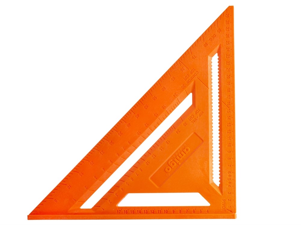 • Разметка на двух сторонах: линейка, шкала разметки наклонных стропил, транспортир, рейсмус, геодезический уклон.