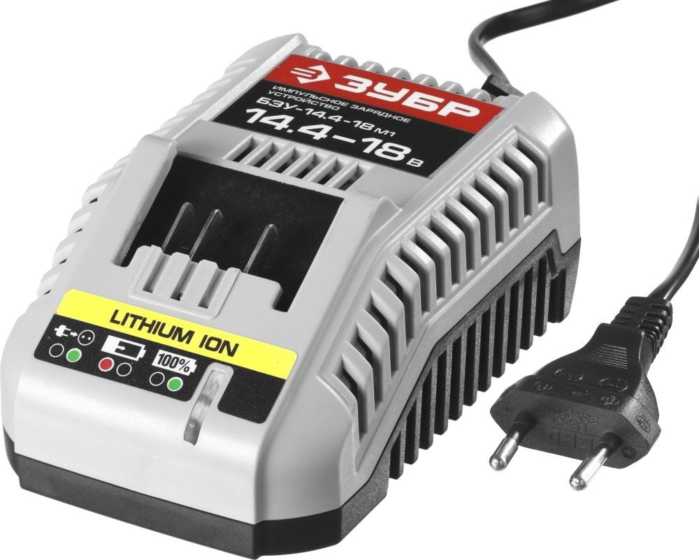 Универсальное быстрозарядное устройство Зубр Мастер Импульс БЗУ-14.4-18 М1 - полностью цифровое интеллектуальное устройство для бережной и максимальной (в отличие от устройств другого типа) зарядки батареи - для полной отдачи Вашего инструмента ЗУБР. Более глубокий заряд позволяет использовать 100% емкости. Высокий КПД. Более щадящая зарядка аккумулятора. Меньше нагрев. Диагностика состояния АКБ. Контроль степени заряда и температуры. Автоматическое отключение по окончании зарядки или при неисправности АКБ. Защита от повреждений зарядного устройства и аккумулятора. Защита от перепадов напряжения в сети. Защита от перегрева. Защита от короткого замыкания. Защита от переполюсовки контактов. Светодиодная индикация процесса зарядки.