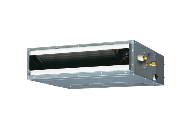 - Внутренний блок обладает рекордно малой высотой (всего 198 мм), что позволяет устанавливать данную модель в ограниченном пространстве.