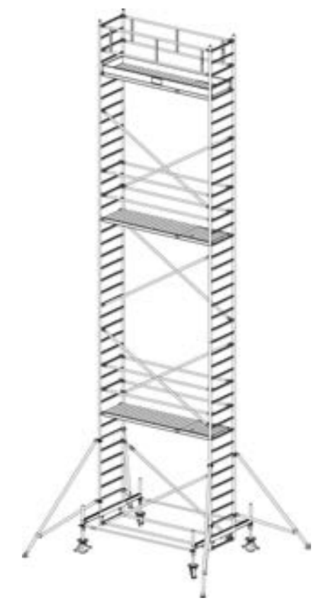 Алюминиевая вышка-тура Krause Stabilo 100 11,4м 751164 прошла проверку TUV, предельная нагрузка 200 кг/м2 (группа помостов 3) в соответствии с DIN EN 1004. Алюминиевое изделие универсального типа для рабочих высот до 14,00 м. В собранном состоянии вышка легко перемещается на базовой траверсе. Регулируемые по высоте ролики обеспечивают безопасность на неровных поверхностях. Платформы легко навешиваются между перекладинами (шаг - 25 см). Исключаются трудоемкие операции переналадки и демонтажа. При рабочей высоте изделия 7,40 м и более в комплект поставки включаются угловые опоры. Длина помоста: 3,00 м. Ширина помоста: 0,75 м.